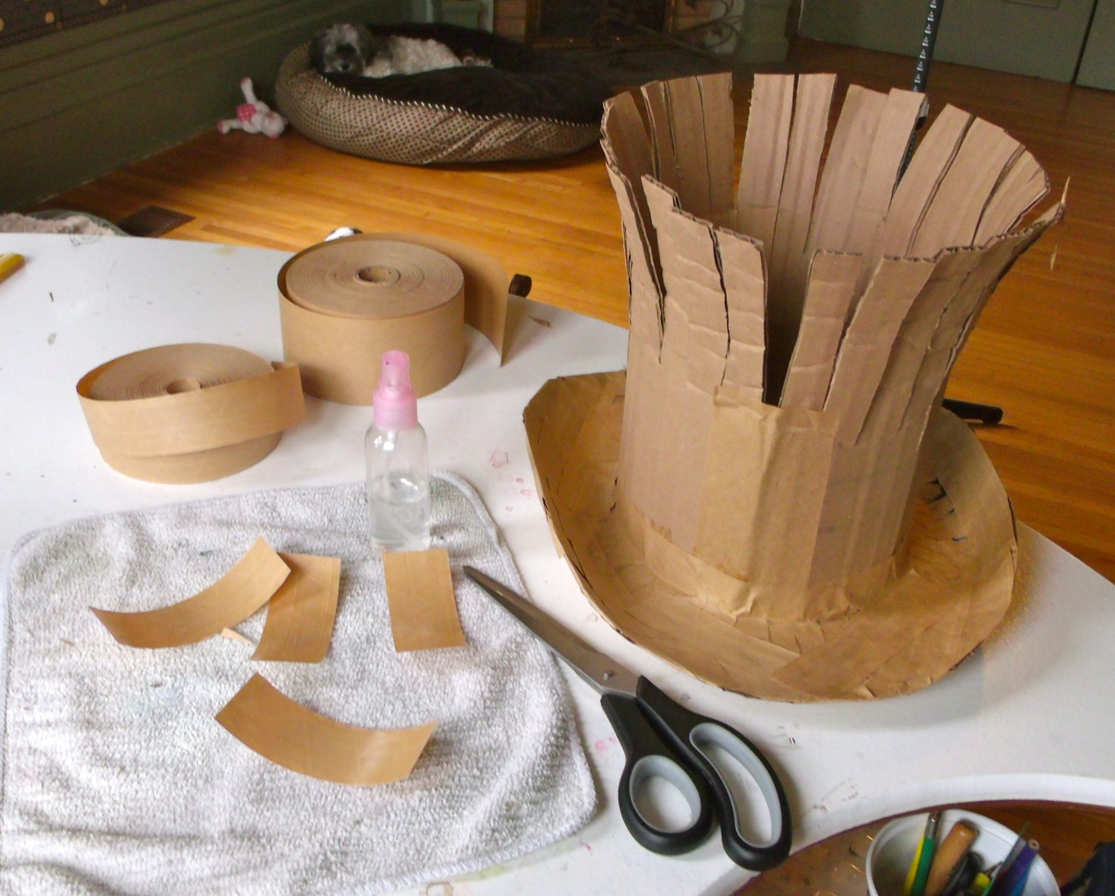 We found leftover, unpainted sheets of this wall covering in the attic. I sectioned off the areas that were of interest.